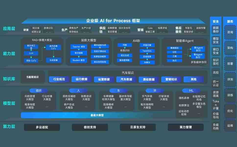 端到端的一站式AI工作空间深度融合了从企业战略规划到日常经营的全流程业务板块,,,,定向解决车企内部领域多、、、、部门多、、、链条长、、场景碎片化等难题,,,,支持车企快速构建以AI为核心的生产力写作体系,,实现任务执行与AI能力的无缝集成与交互